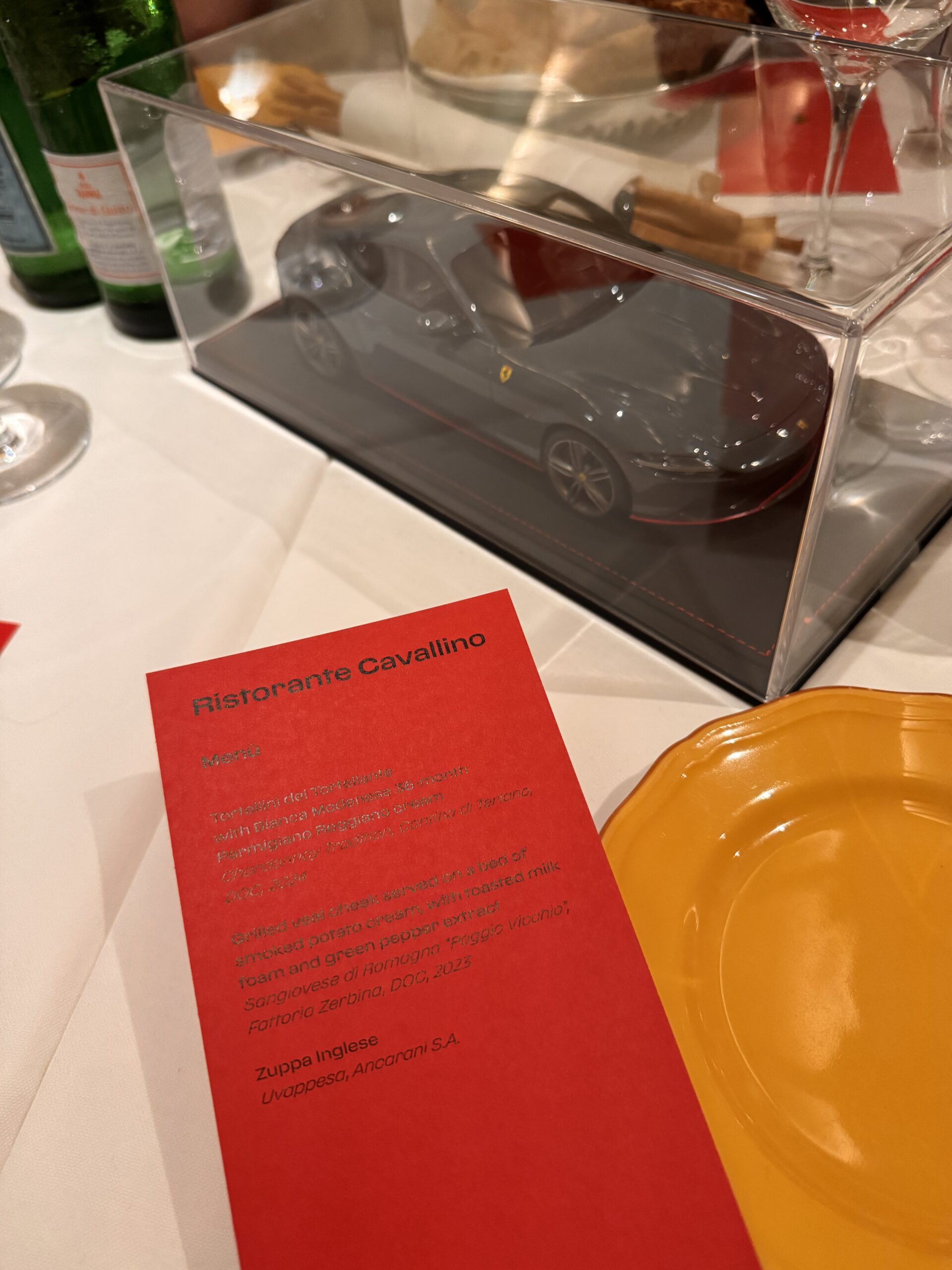 Illalla nautimme illallisen Cavallino-ravintolassa, joka on Ferrarin ikoninen kohtaamispaikka uudistettuna Massimo Botturan (Osteria Francescana) käsissä. Tasting-menu viiniparituksineen tarjoaa modernin näkökulman Emilia-Romagnan keittiöön autourheilun historian ympäröimänä. Illallisen jälkeen kuljetus takaisin hotellille.
